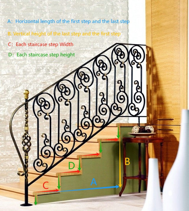 Measurement Inputs: Length of each section provide the complete rail section length measurement from Top to Bottom of the Stair Railing section.
